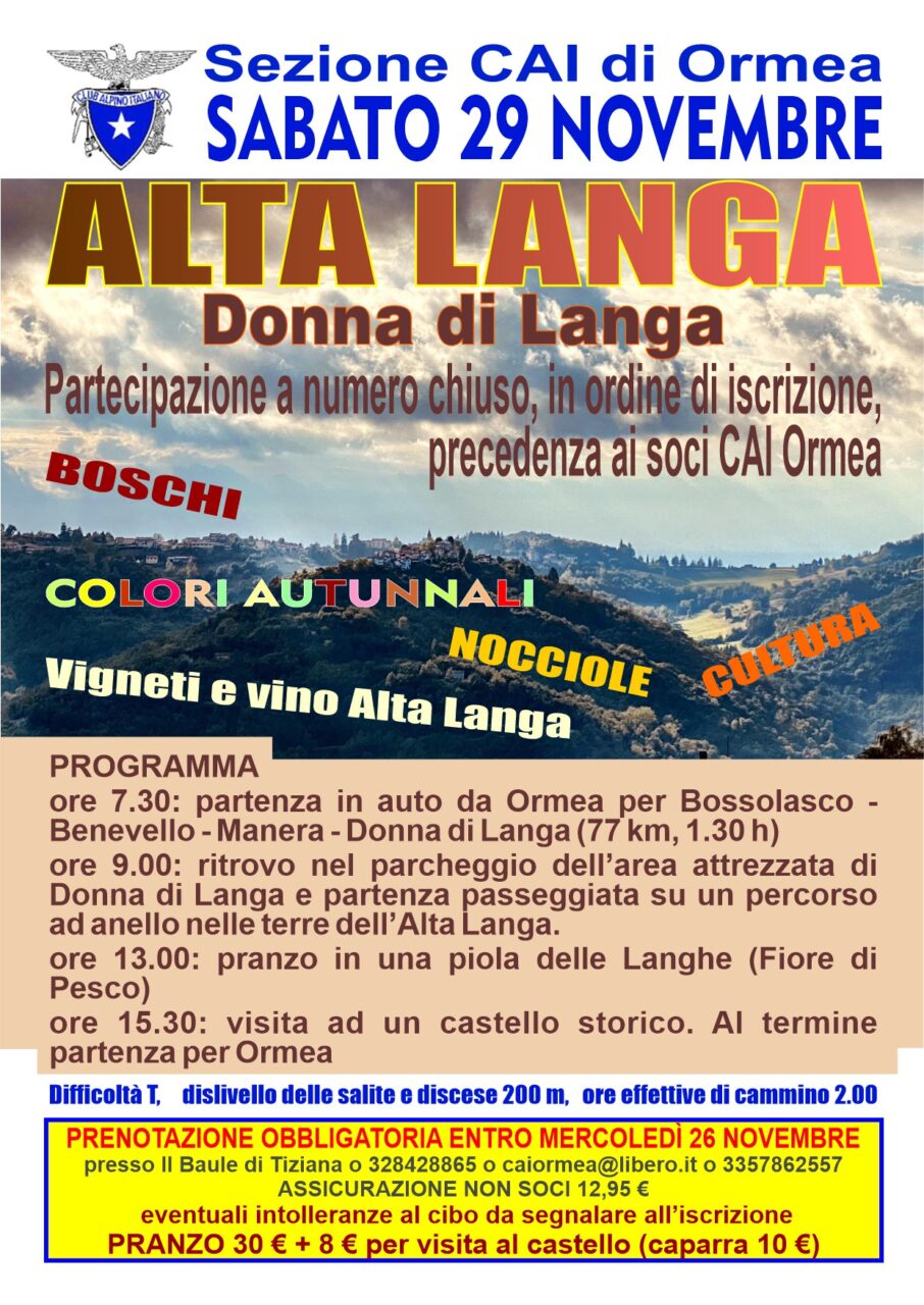 GENNAIO12 Armetta dal Colle di Caprauna, Valle Tanaro19 Giornata “Sicuri con la neve”FEBBRAIO9 Escursione con le racchette da neve in Valle Tanaro23 Mont Ours e Pointe Siricocca, Costa AzzurraMARZO9 I sentieri di Fossano23 Anello a Leggi tutto